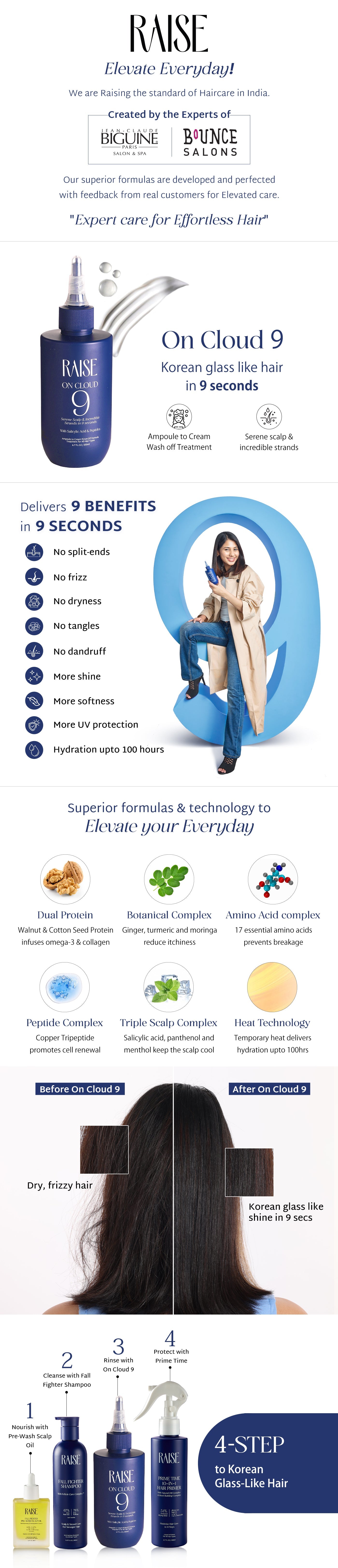 Raise Viral Korean Glass like Shine Combo | Fall Fighter Shampoo & On Cloud 9 Treatment | Instant Korean Glass-Like Shine